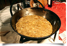It is possible that, like gazpachos and fried cakes, they have their origin in the Arab cuisine that was so fond of meals made with flour. Oil, garlic, flour and water are the ingredients. It looks like an omelet with a golden crust. They are usually eaten in the own pan and they are watered with generous red wine and some sour dressings.