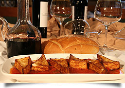 Fresh goat cheese fried and accompanied by tomato, also fried, constitute an exquisite blend of extraordinary simplicity. It is accompanied by white or pink wine.