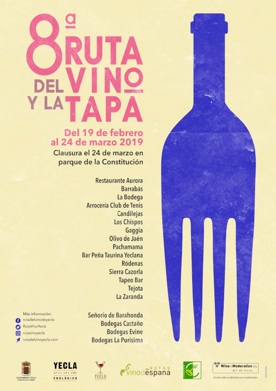 Recordamos también que como en años anteriores, dispondremos de una app desde donde podrás ver las tapas, establecimientos, mapa ubicación, las bases de la 8ª Ruta del Vino y la Tapa y hacer tu envío de sugerencias de forma anónima. También puedes hacerlo en la web de la Ruta del Vino de Yecla www.rutadelvinodeyecla.com y siguiéndonos en Facebook.