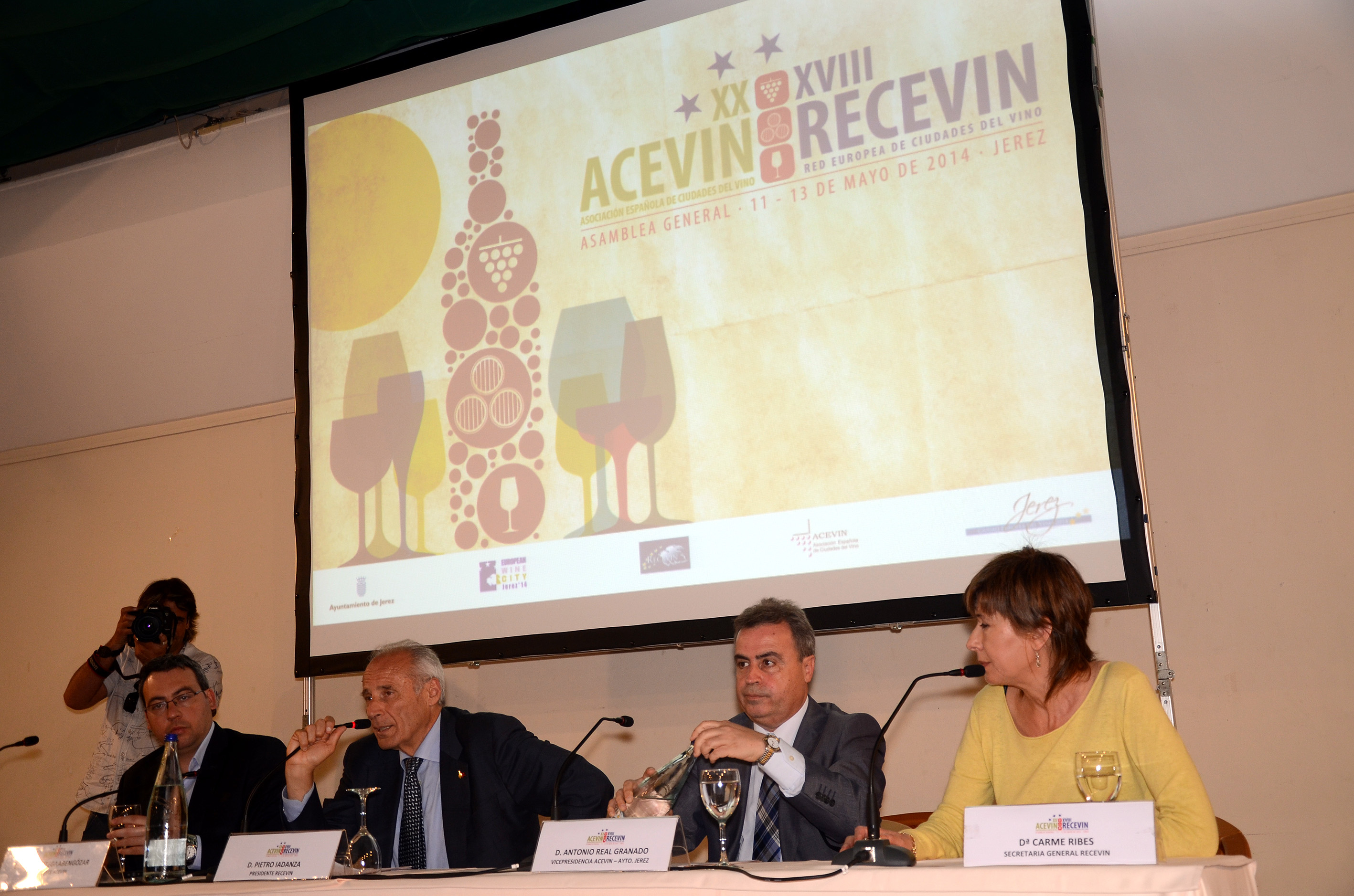 Durante estos días también se ha celebrado en Jerez de la Frontera la Asamblea de la Red Europea de Ciudades del Vino (RECEVIN), de la que ACEVIN y sus socios forman parte. En ese marco, se ha propiciado un encuentro para analizar los retos actuales y del futuro inmediato que tiene los territorios europeos del vino y el posicionamiento conjunto de las ciudades que forman parte de RECEVIN. También se han llevado a cabo seminarios en los que se ha tratado el tema del enoturismo como valor en alza y factor de promoción económica y desarrollo de los territorios, la política energética de los territorios del vino y la cultura gastronómica y del vino en el Mediterráneo, basada en la relación de productos de calidad y beneficiosos para la salud.