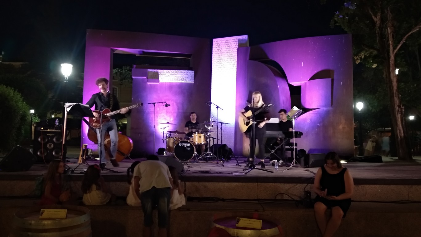 La noche del viernes 6 de julio la pasamos en el parque de la Constitución degustando una rica variedad de tapas ideales para las noches de verano preparadas por el Restaurante Tejota que junto a los vinos DO de nuestras bodegas nos prepararon para ver la película " Un paseo entre las nubes" en la explanada de San Francisco.