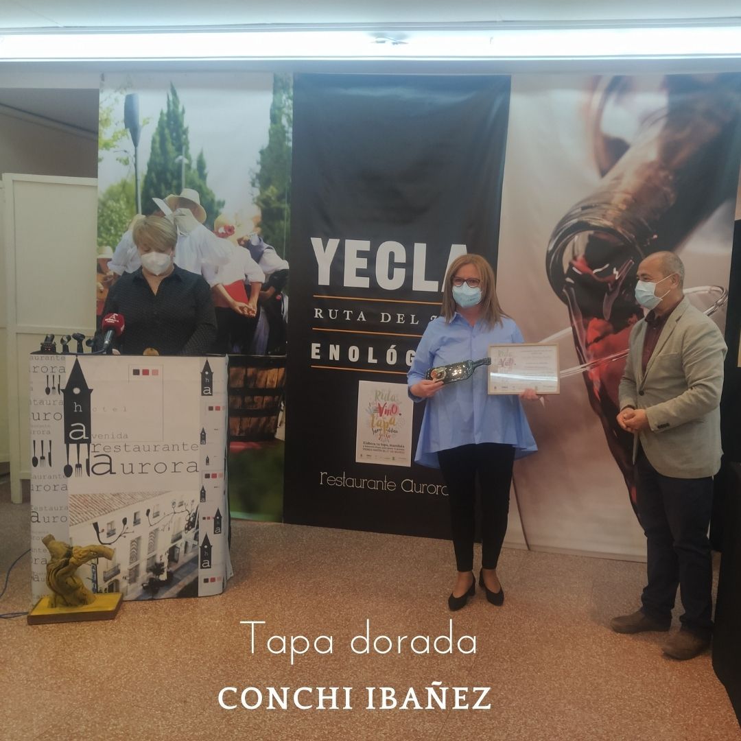 Primer Premio: Tartar Ahumado. Maridado con Barahonda Blanco Organic 2020 de Bodegas Barahonda, propuesta presentada por Conchi Ibañez Puche. Premio compuesto por el trofeo “Tapa Dorada” al mejor maridaje presentado, pieza única realizada en vidrio por Ópalo Vidrieros, artesanos de nuestra localidad, y de una escapada de un fin de semana para cuatro personas a nuestra Ruta del Vino, escapada que incluye alojamiento y visita a bodega/almazara con cata incluida.