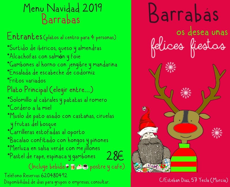 Barrabas ha elaborado un menú de navidad para 4 personas o posiblidad de grupos previa reserva al teléfono 620480492