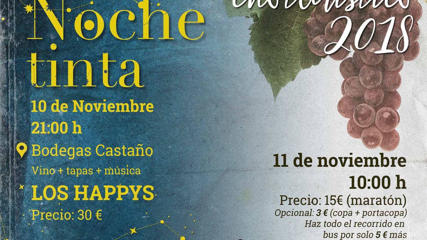 Conoceremos los primeros vinos 2018 de Bodegas Castaño, saborearemos una amplia variedad de tapas y la noche estará amenizada por el grupo los Happys, música pop con un poco de diversión y como ellos dicen: "Somos músicos, somos cantantes, pero sobre todo ¡somos y queremos que seáis HAPPYS!"